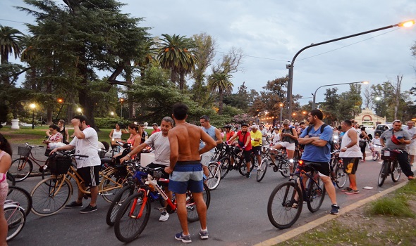 Bicicleteada nocturna por el Día sin autos