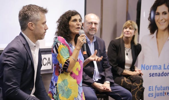La precandidata a senadora del frente Juntos en la lista Sumar, Norma López, junto a la precandidata a…
